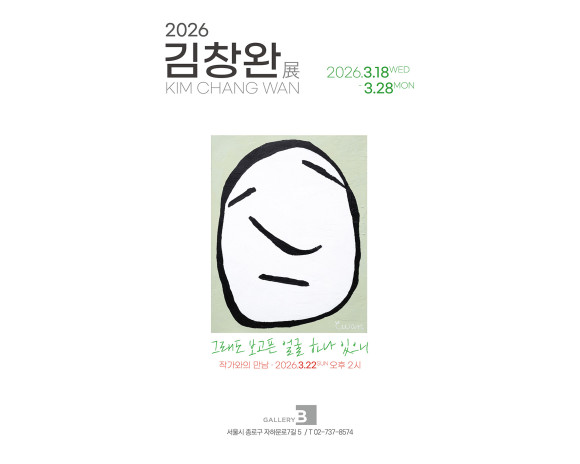 김창완 초대개인전 '그래도 보고픈 얼굴 하나 있으니' - 전시일시 : 2026년 3월 18일(수)-3월 28일(토) 11:00-18:00 - 전시작가 : 김창완 - 전시장소 : 갤러리B (서울 종로구 자하문로7길 5 칸다소바 지하) - 작가와의 만남 : 2026년 2월 22일(일) 오후 2시 2026년 3월 갤러리B는 김창완밴드